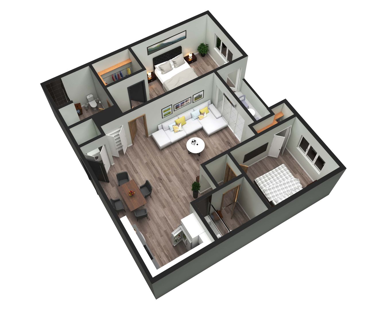 All units are 2 bedroom +2 baths 1,050 SF, with similar floor plans and custom vanity, no two units are the same! Come tour and see for yourself!