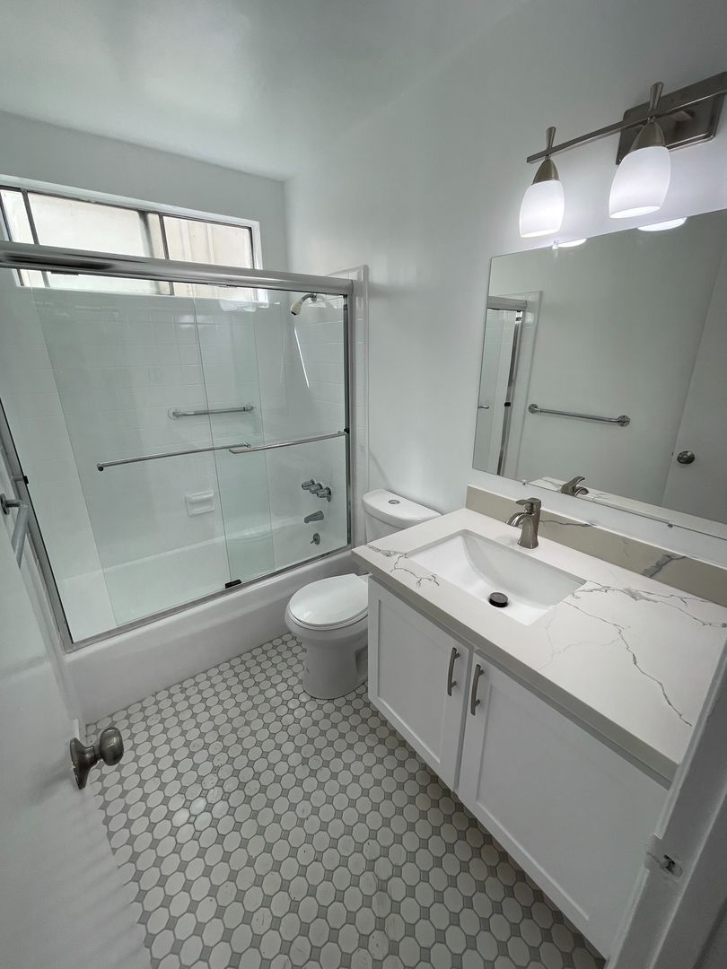 Welcome home to our Newly Remodeled unit in a prime Beverly HIlls location! Just block from La Cienega Park and BH Tennis Club! The first floor apartment comes with updated kitchen with a Stove, dishwasher, lot of cabinet space, granite countertops, and a refrigerator. After entering the unit, there is a large closet next to the nook with built in desk! A recently renovated modern style kitchen leads to a large dining nook, with another closet! A spacious balcony off of the living room, a quiet space facing the west. The living areas and bedrooms have dark laminate hardwood floors. A small hallway with additional storage cabinets, leads to both bedrooms and bathrooms. The master bedroom includes an en-suite bathroom with a skylight and two large sliding closets! The second bedroom includes a sliding closet, great for a home office , hobby room or a bedroom! The bathroom between the bedrooms has an updated vanity and tub/shower combo!