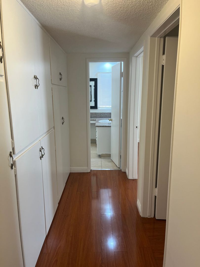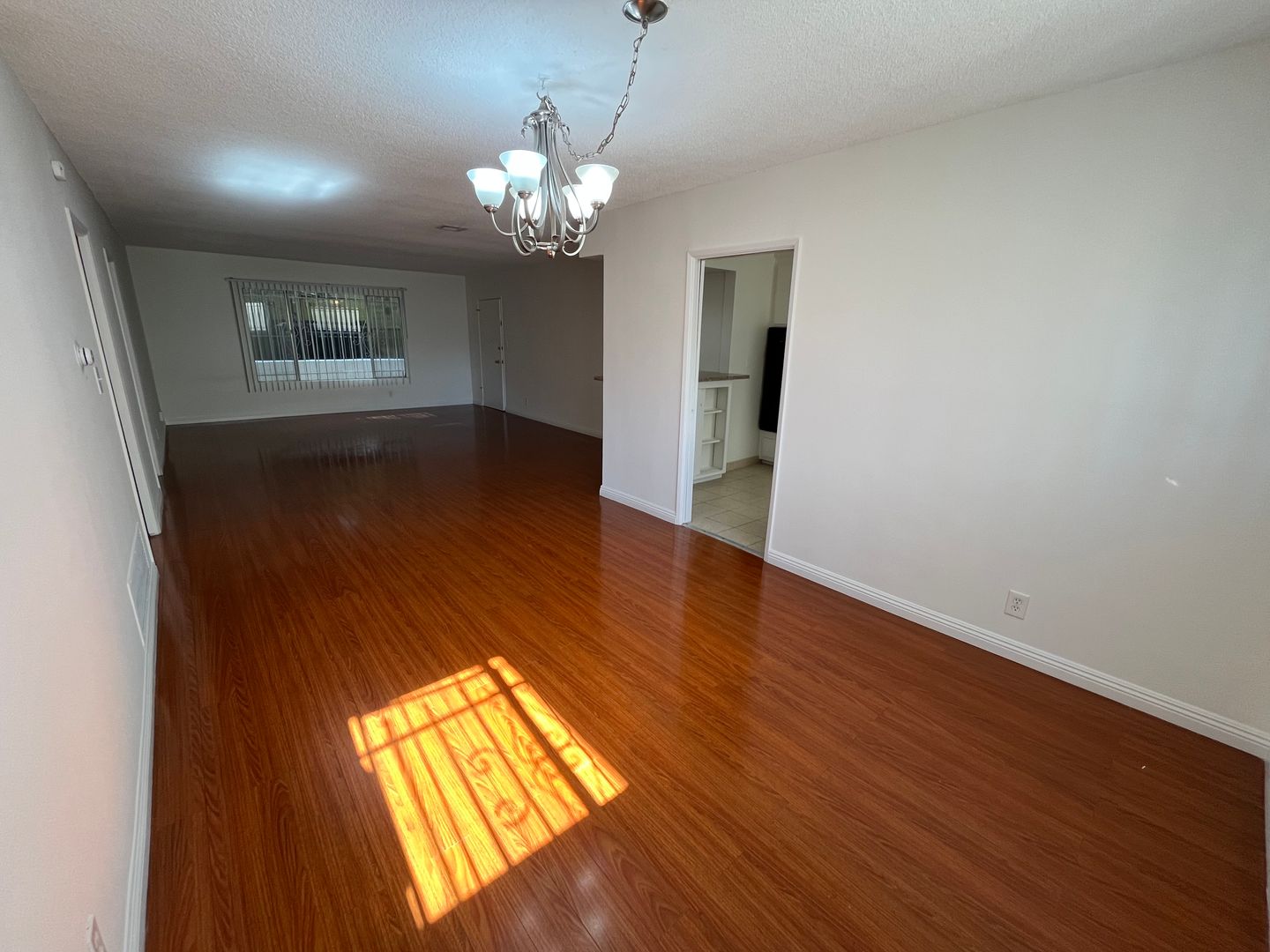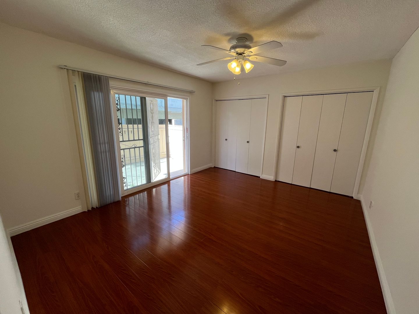 This exceptional, spacious, and airy unit offers modern comfort with central air conditioning and heating and features beautiful hardwood-like floors throughout the living room, dining area, and bedrooms. Equipped with lots of storage, the home provides a true indoor/outdoor experience with a large patio area that opens directly from the back bedroom, and comes fully equipped with essential kitchen appliances, including a stove/oven, refrigerator, and dishwasher.