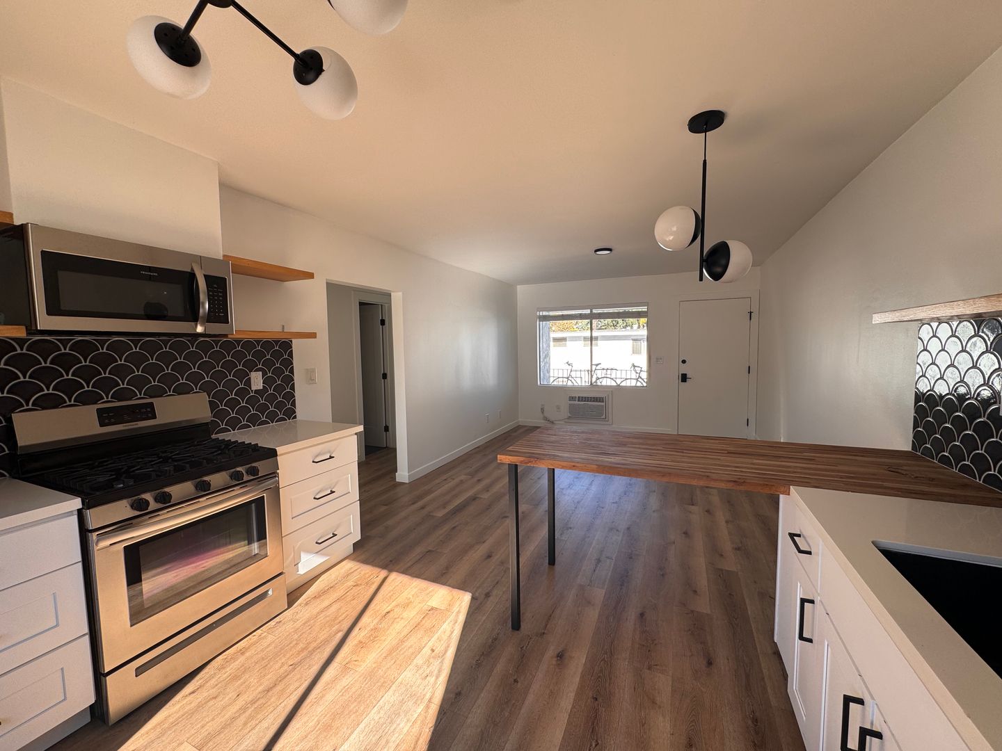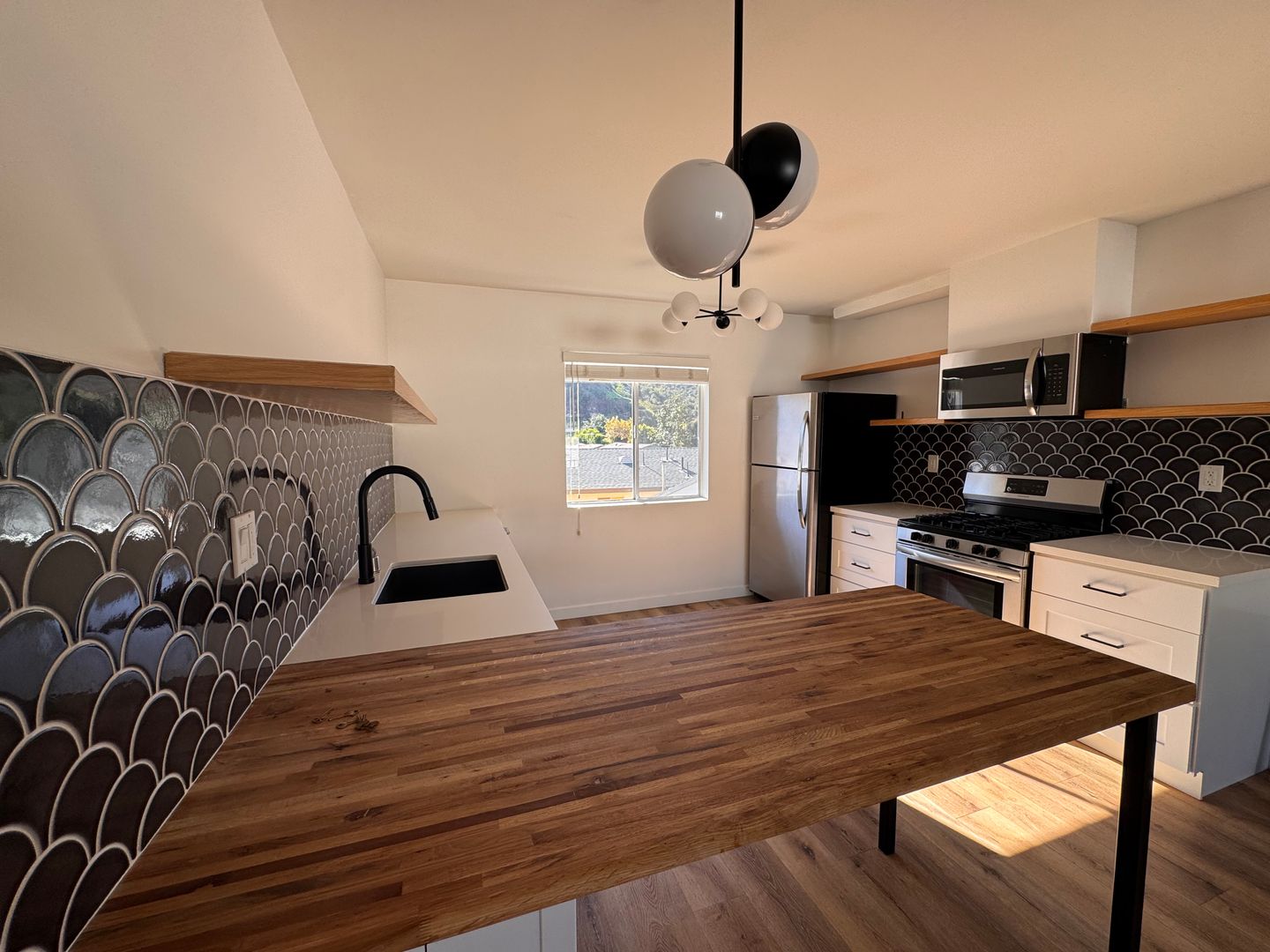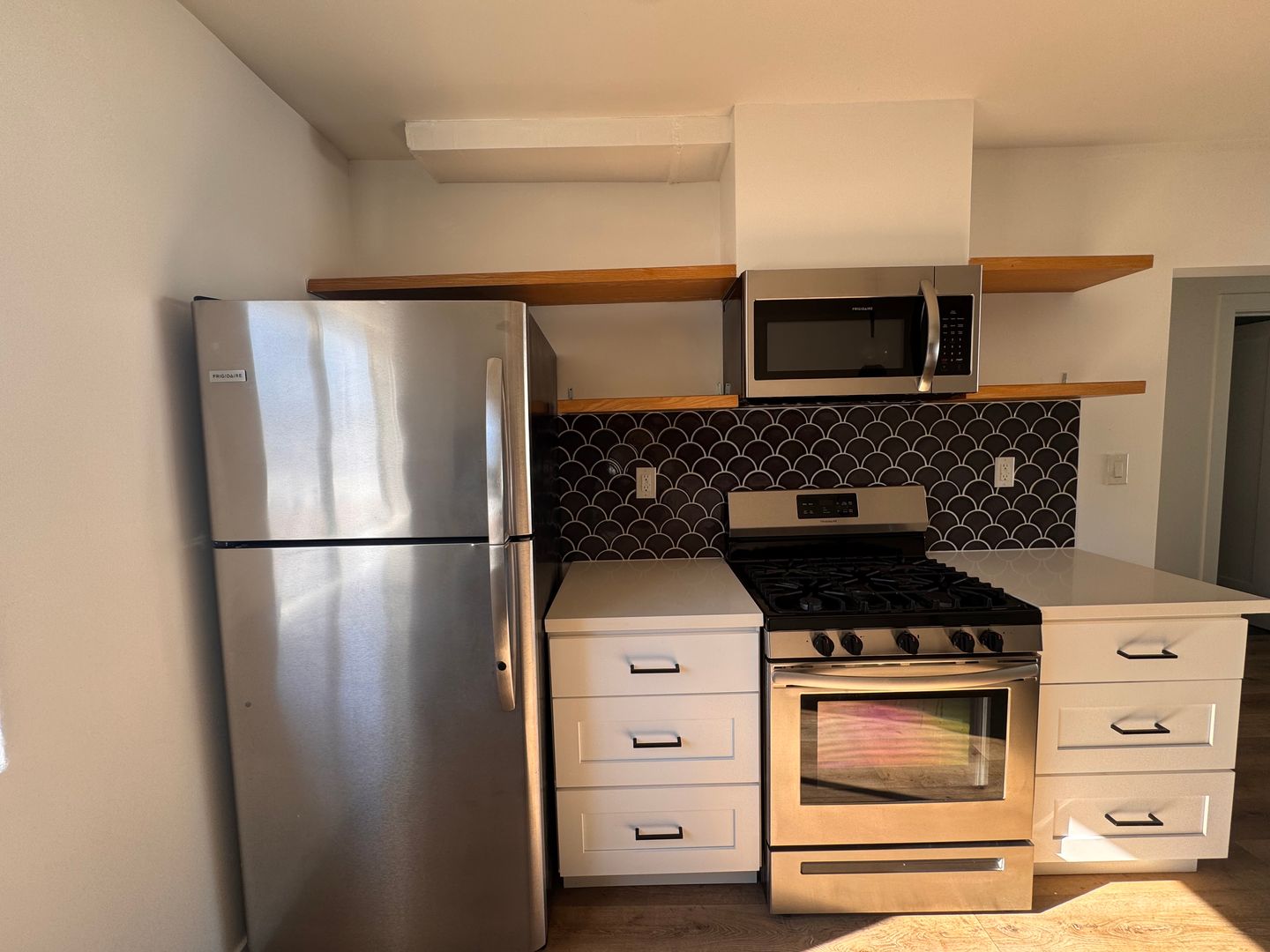 Beautiful tile details and gold hardware ensure you'll have all the newest, modern trends, and space to share it with your friends! They are bound to be impressed with the gold hardware found throughout, making this place ooze with an heir of classic confidence. The kitchen is equipped with all stainless steel appliances and sleek finishes + that wraparound kitchen bar gives you maximum functionality without taking away from your space.