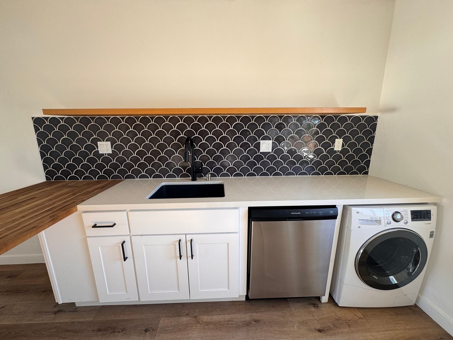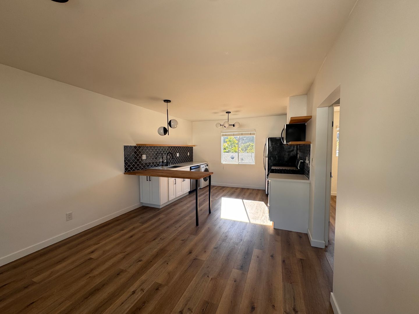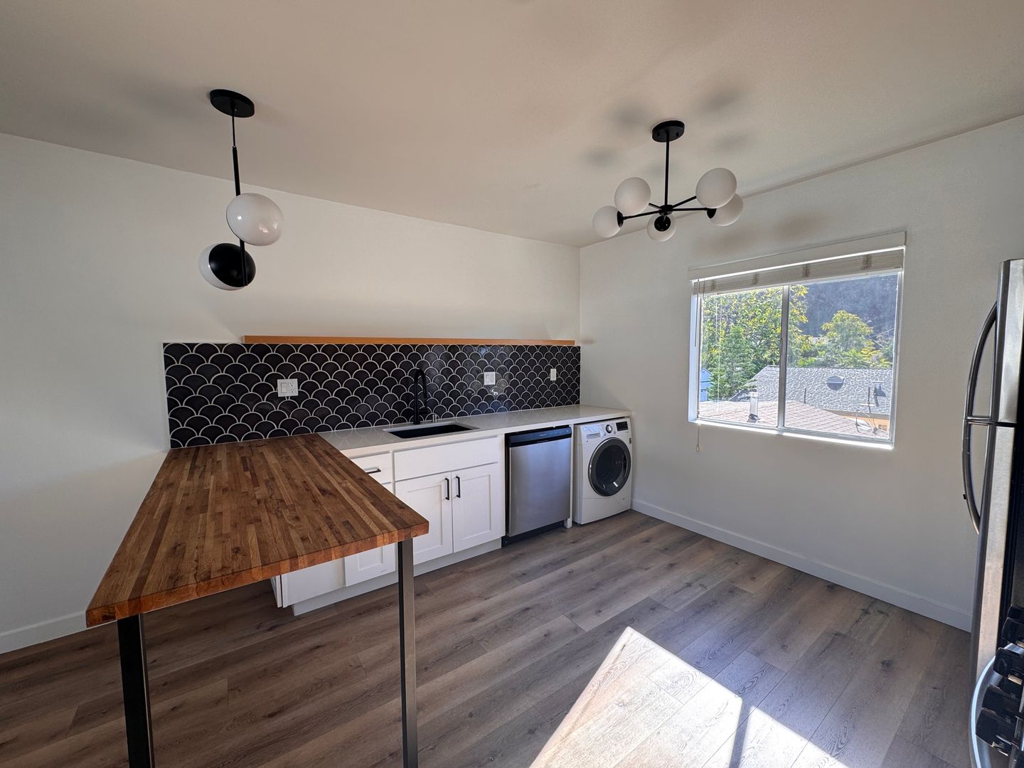 Beautiful tile details and gold hardware ensure you'll have all the newest, modern trends, and space to share it with your friends! They are bound to be impressed with the gold hardware found throughout, making this place ooze with an heir of classic confidence. The kitchen is equipped with all stainless steel appliances and sleek finishes + that wraparound kitchen bar gives you maximum functionality without taking away from your space.