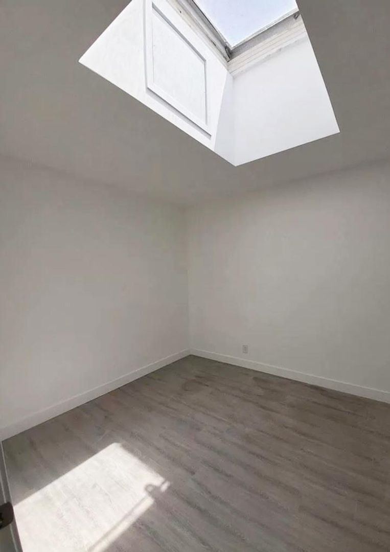 This sunny and inviting unit features a spacious primary bedroom and a versatile second bedroom—perfect for a home office or guest room. Enjoy beautiful hardwood floors throughout, abundant natural light from numerous windows and skylights, and a comfortable living room with space for both relaxing and dining.